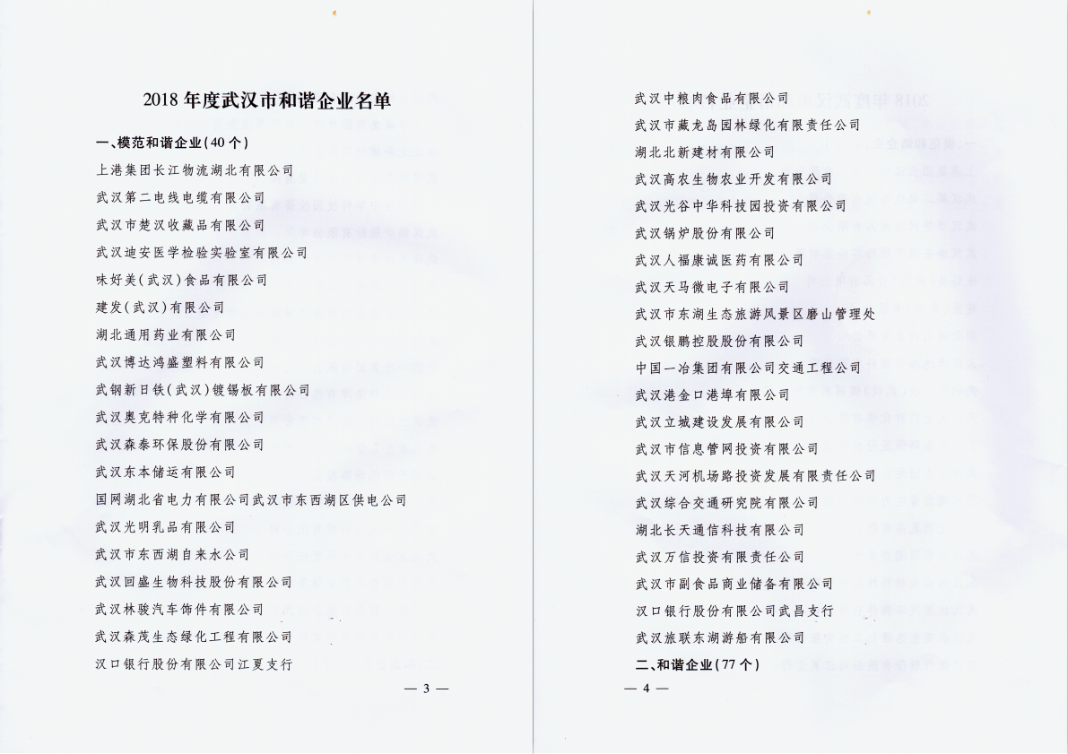 公司歷年來高度重視和諧企業(yè)創(chuàng)建工作,積極構(gòu)建規(guī)范有序、公正合理、互利共贏、和諧穩(wěn)定的勞動關(guān)系。自2013年榮獲武漢市“和諧企業(yè)”榮譽稱號,公司繼續(xù)保障企業(yè)和勞動者合法權(quán)益,助力社會經(jīng)濟發(fā)展。今年5月起,公司工會參加了2018年度市級和諧企業(yè)選樹活動。通過對照武漢市和諧企業(yè)評價標準,公司開展了自查自評和申報工作。在2016年至2018年三個測評年度中,做到了與職工和諧、與社會和諧、與自然和諧。經(jīng)過市創(chuàng)建辦的初審、網(wǎng)絡公開投票、第三方綜合評價、職工測評及考核、綜合評定、公示、發(fā)文確認等環(huán)節(jié),最終獲得武漢市2018年度“模范和諧企業(yè)”殊榮。