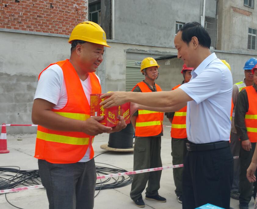 8月9日下午,市城投公司總工程師朱斌帶隊到信息管網公司建設大道延長線項目工地現場開展夏季高溫慰問活動,為堅守在建項目建設工作一線的干部職工送來解暑降溫物資。