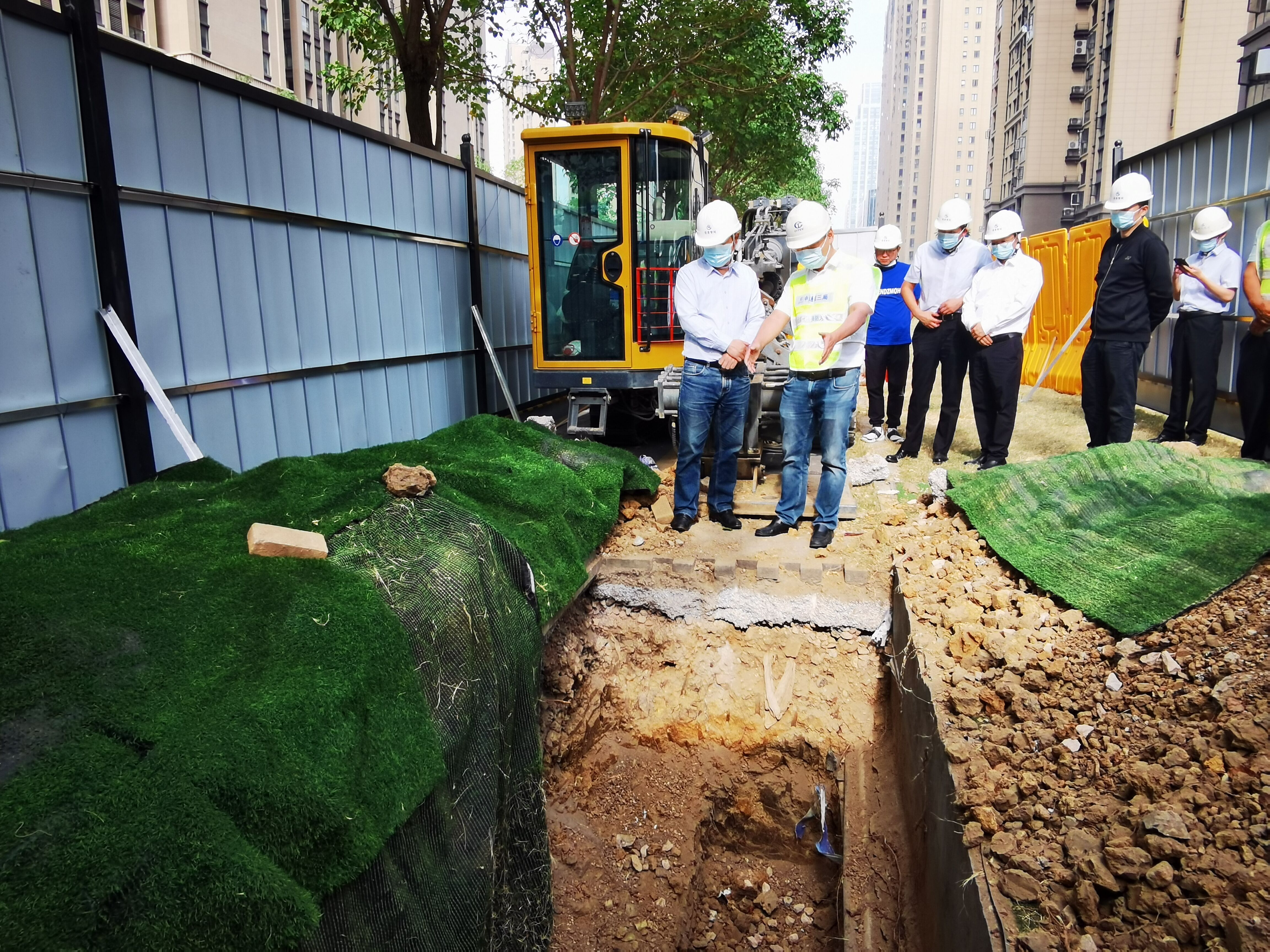 2022年9月23日上午,梅林二街項目正式開工,公司黨委書記、董事長汪小云帶領攻關團隊成員到現場檢查指導。由于該工程需要水平導向鉆機開挖,并進行拖管施工,作業時要嚴格按照預先設計的鉆孔曲線和鉆桿的鉆進角度進行施工,敷設第一根頂管顯得尤其重要。汪小云在施工單位順利敷設完第一根頂管作業后,對下一步工作提出具體要求:一是按照設計標準施工,保障項目進度按期完成;二是做好現場安全文明施工管理措施,合理控制施工過程中產生的噪音,不能擾民;三是時刻關注施工作業深度,做好地下管線的探測和保護;四是要加強日常督導,確保活動有序推進,早日實現既定目標任務,造福周邊居民群眾。他強調,今年是黨的二十大和省第十二次黨代會召開之年,是武漢國企改革專項行動的收官之年,我們各級黨組織和黨員都要在服務企業決策、開拓市場、提高效益、服務社會中打頭陣、爭當先鋒,在各自崗位上創業績、做奉獻,將為民服務和“我為群眾辦實事”實踐活動推向深入。