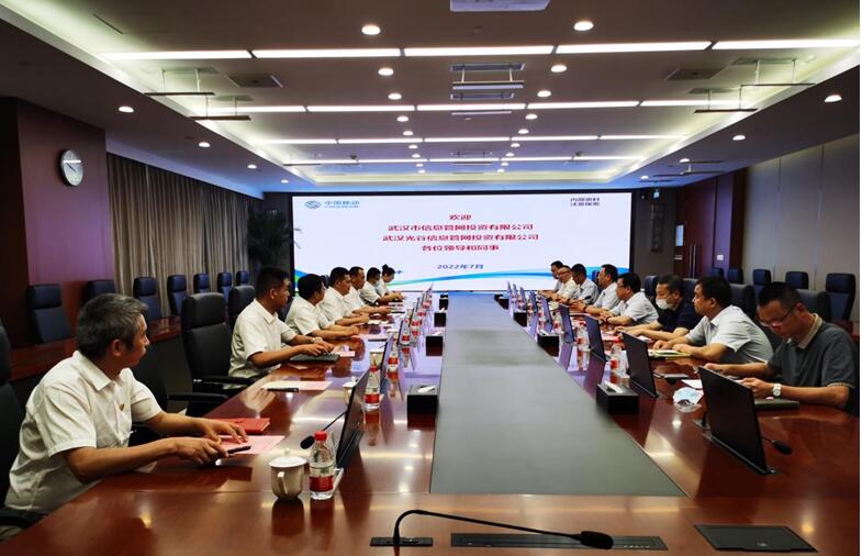 7月15日,市信息管網(wǎng)公司黨委書記、董事長汪小云,總經(jīng)理、黨委副書記韓英進帶隊拜訪中國移動武漢分公司,與中國移動武漢分公司總經(jīng)理董偉就深化合作開展座談交流。中國移動武漢分公司副總經(jīng)理張景超,市信息管網(wǎng)公司黨委委員、副總經(jīng)理吳曲濤及參股公司武漢光谷信息管網(wǎng)公司相關(guān)人員參加座談。