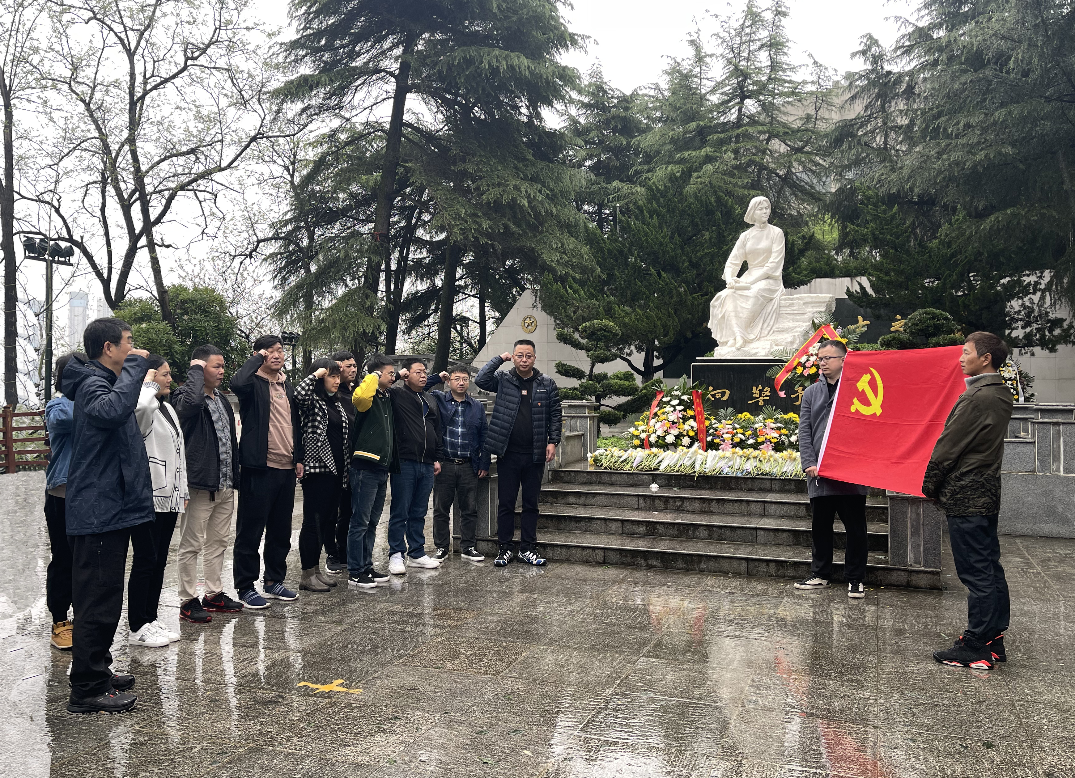 上午10時許,小雨淅瀝,大家在向警予烈士塑像前莊嚴肅立,向向警予烈士敬獻花籃、鞠躬敬禮、逐字逐句重溫入黨誓詞。大家懷著崇敬的心情瞻仰了向警予烈士墓和紅色戰士公墓,一起追思他們在戰爭時期,為保衛祖國和平,維護人民利益,壯大黨的發展,拋頭顱,灑熱血,英勇奮斗,前仆后繼的崇高事跡,緬懷英烈崇高精神,表達無限崇敬之情。