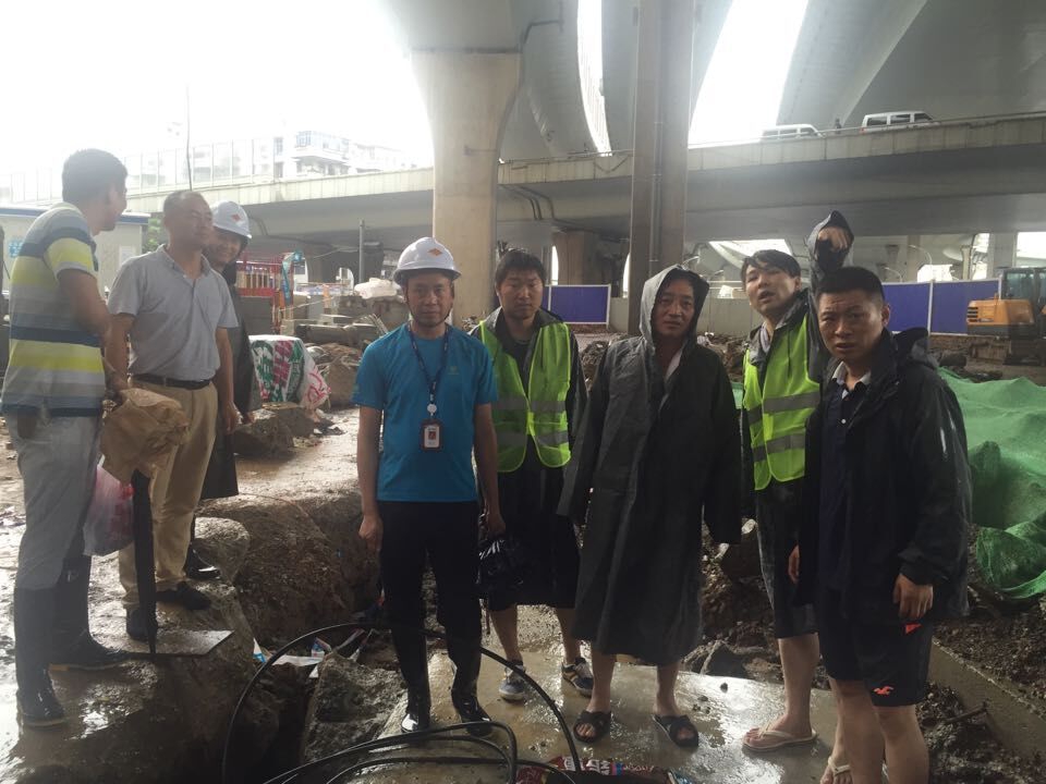公司董事長榮茂華同志身先士卒,連續(xù)3天24小時堅持崗位,保持白天、夜晚2次坐鎮(zhèn)工程項目現場指揮調度。公司工程管理部、分公司全員出動,協(xié)調調配5家施工單位、3家監(jiān)理單位,共計70余人次、搶險車輛10臺、抽水機6臺,在工程現場日夜蹲守待命。